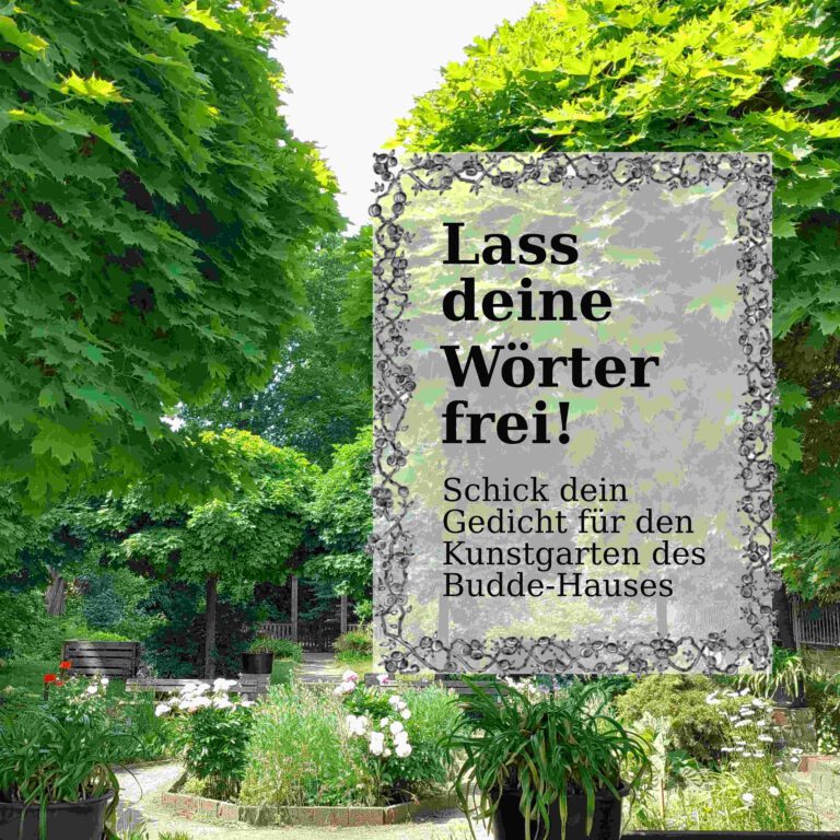 Dem Aufruf des Budde-Hauses in Leipzig bin ich gern gefolgt: Und so durfte mein Akrostichon "Landsommerblues" im langen Sommer 2023 für eine Weile den dortigen Kunstgarten zieren.